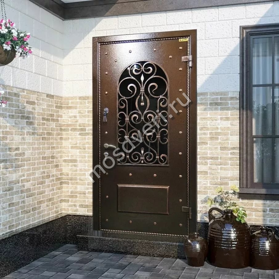 Входные двери со стеклом и ковкой в Люберцах